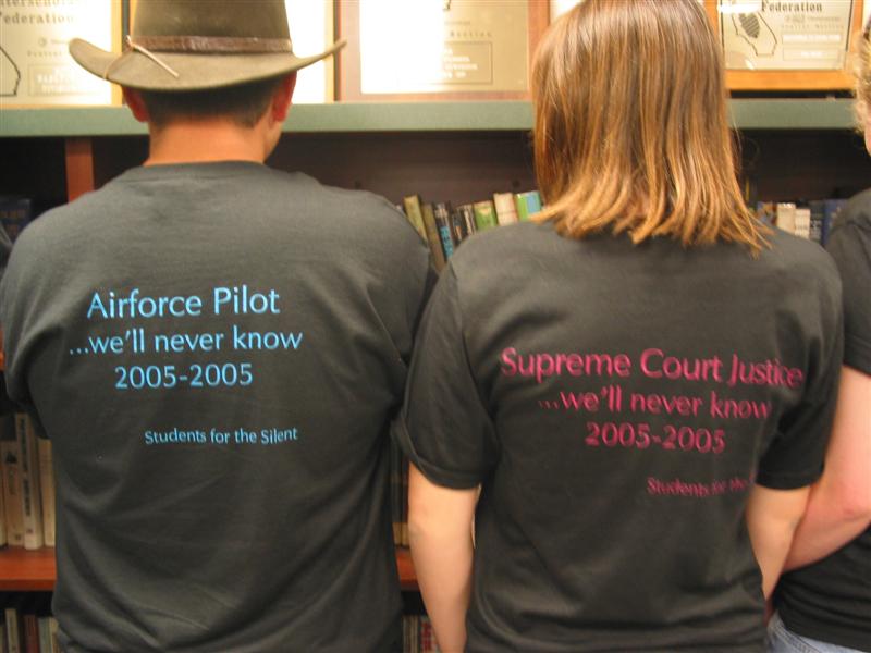 2005-2005. Students for the Silent." The female shirts read: "Baby Kate"